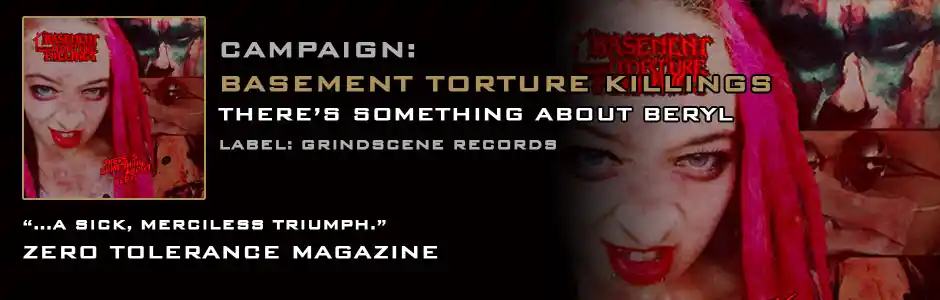 So what better title for the latest album from Basement Torture Killings? There's Something About Beryl takes not only the madness to new levels, but the sheer musicality as well. Conscienceless monsters they most certainly are, but BTK can play! You won�t hear a more intense, more terrifyingly convincing slab of death or grind anywhere. Tarquin�s solos tear through these songs like power tools through flesh, the onslaught of the bass and drums is utterly overwhelming and then there�s Beryl � a chilling presence of unfathomable inhumanity and sadistic cruelty, repulsive and yet compellingly enticing. This album is a sickness, as infectious as the plague. This band are unnerving, dangerous and addictive.