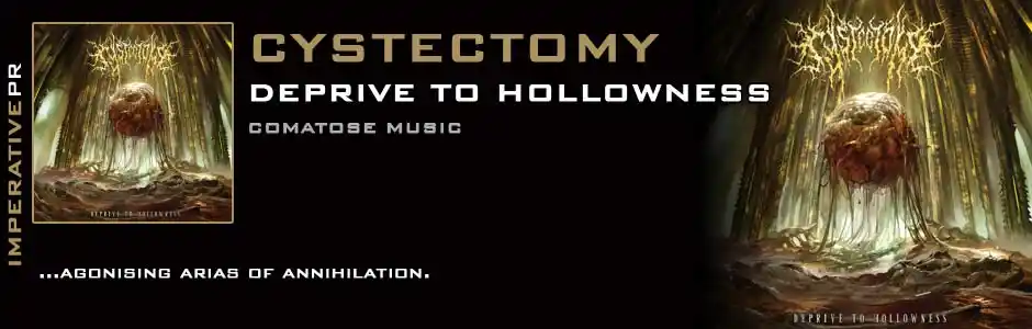 Mixed and mastered by Floor van Kuijk (Carnifloor, Focal Dystonia, Korpse etc) at GLDCHN Studios (Cadaverous, Ungraceful, Undeciphered etc) Deprive To Hollowness sounds utterly monstrous – and with the might of Comatose Music behind them Cystectomy’s impact on the extreme music scene will be fearsome. November 5th is the date set for the unleashing of this unholy abomination so say your prayers and prepare to be hollowed!