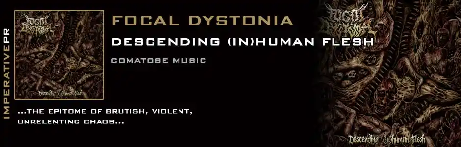 December 11th is the date set for the release of Focal Dystonia’s staggering debut through Comatose Music – where else would such a warped outpouring of depravity find a home? A horrifying love letter to the brutal death metal scene, Descending (In)Human Flesh is everything that fans could desire and it will surely become recognised as a genre defining classic. Prepare yourself for an onslaught of unprecedented proportions and expect no mercy!