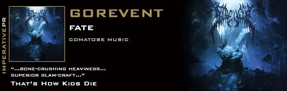 For fifteen years now Gorevent have lurked in the deepest recesses of the brutal death metal underground, delivering a series of albums, EPs and split releases that have stood as blood splattered monoliths in those shadowed catacombs - Teeth Of The Divine hailing their 2008 full length, Abnormal Exaggeration, as one of the greatest examples of extreme brutality ever recorded. That though, was before they had heard the single minded savagery of Fate... Fate is driven by relentless hunger and undiluted primal instinct and with the power of Comatose Music behind them, this is where the story of Gorevent really begins. Treasure the trappings of civilisation while you can, because the end is nigh.