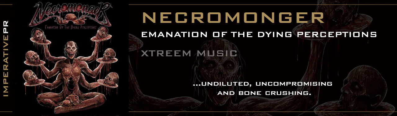 Emanation Of The Dying Perceptions will be prised from its coffin by Xtreem Music on July 9th and released on CD, 12” LP, cassette and digital formats. The CD will feature the bonus track, 'Necromonger' - an epic instrumental combining atmosphere and brutality in a wildly effective, bilious cocktail - while the cassette will feature the additional delights of 'Necrocannibal Pollution', a feast of molten riffs that makes a more than fitting addition to the album's core of carnage. With Emanation Of The Dying Perceptions Necromonger have written a love letter to the dismantling of the human form. Expect no mercy.