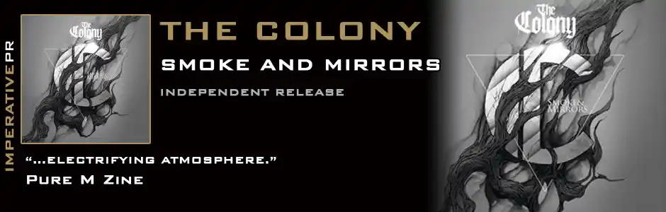 In that box you may hear the sound of a band that can stoke the flames in your blood back from cold ashes, that can ignite the passion that you used to feel when songs spoke seemingly only to you. A band that has everything in place to take on the world. With their new album, Smoke And Mirrors, The Colony have created something that transcends all their previous work. They have created music forged from real passion and emotion, a mesmerising intertwining of melody and aggression, choruses to soar upon, songs with breathtaking landscapes of jagged peaks and staggering chasms. The vocals switch effortlessly from a ground-shaking roar to sweetly, supremely melodic progressions, the guitars spin spiralling solos around riffs like mountains and the rhythm section combine to form a heartbeat, a battering ram, a planet-gutting force. This is the sound of a band ready to explode and take the world with it.