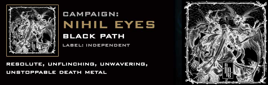 Friday the 13th of October, 2017...mark that date well. On that day a new force will enter the eternal conflict, a new power will raise its standard over the field of battle. The resolute, unflinching, unwavering, unstoppable death metal of Nihil Eyes’ debut album, Black Path, will come roaring out of the darkness, crushing all that dare to oppose it. A machine of war, driven past the point of reason, recognising only two alternatives – victory or death.